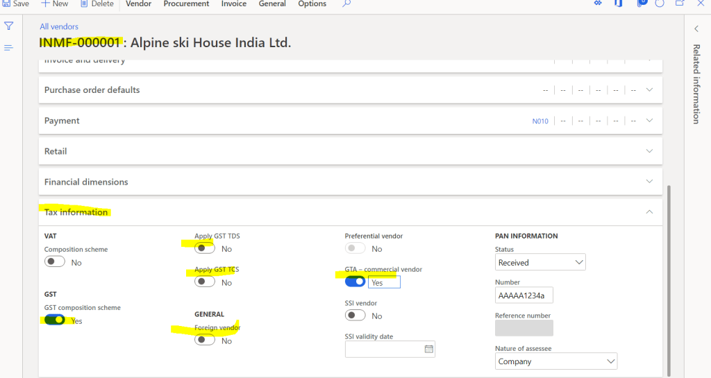 Navigate to, Account Payable > Vendors > All vendors > Edit > Tax information tab