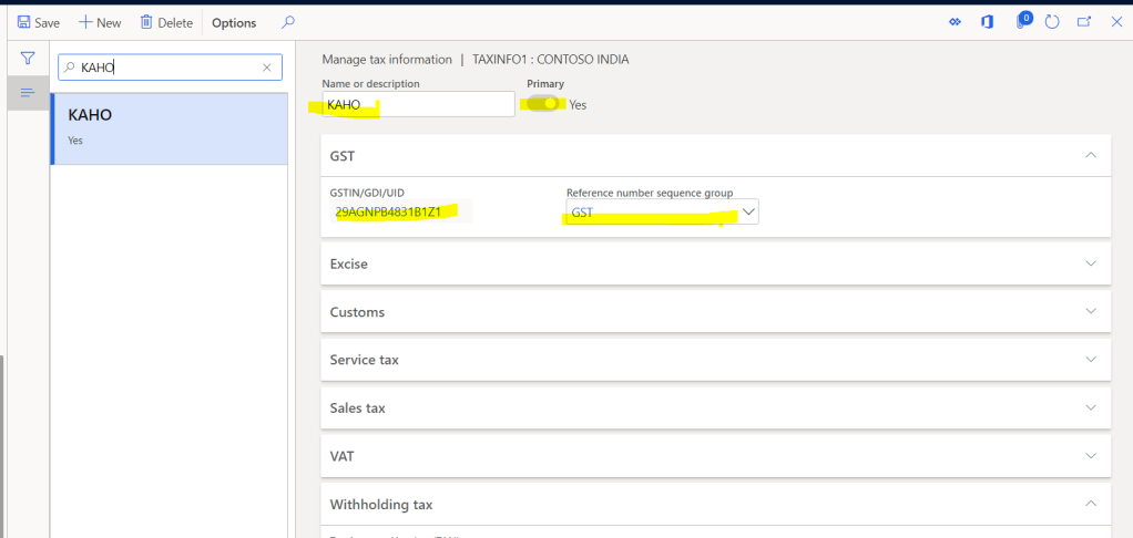 Tax information, Define the GST registration number and GST number sequence group, Now GST reference number sequence group has to be mentioned as per the number sequence requirement for that location (Explained in last Blog)