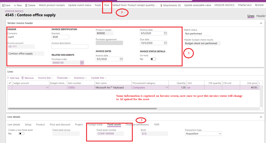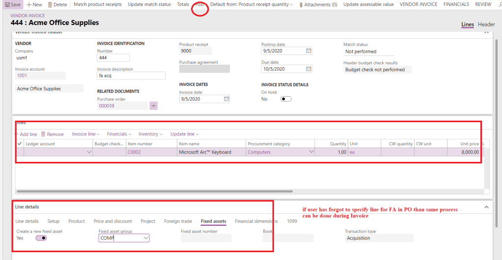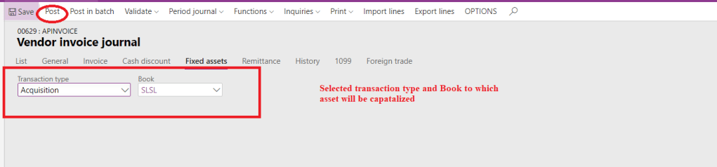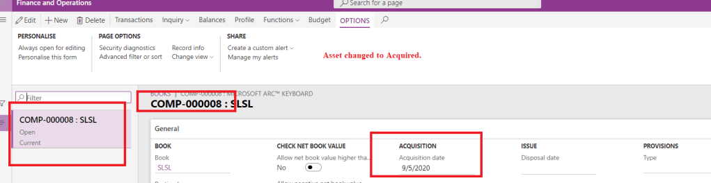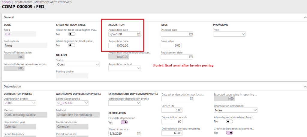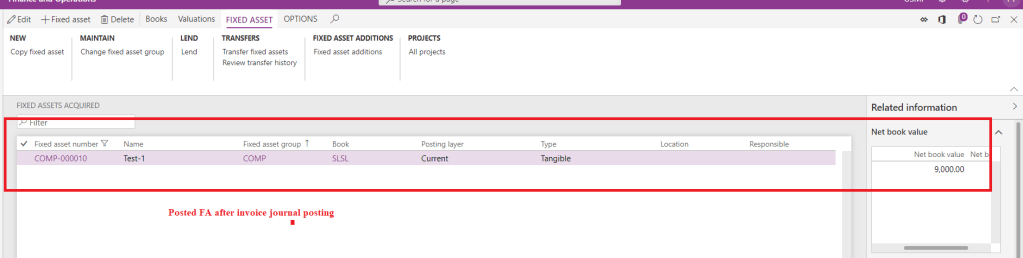 Note: Follow same steps to Acquire fixed asset as in previous scenarios.
