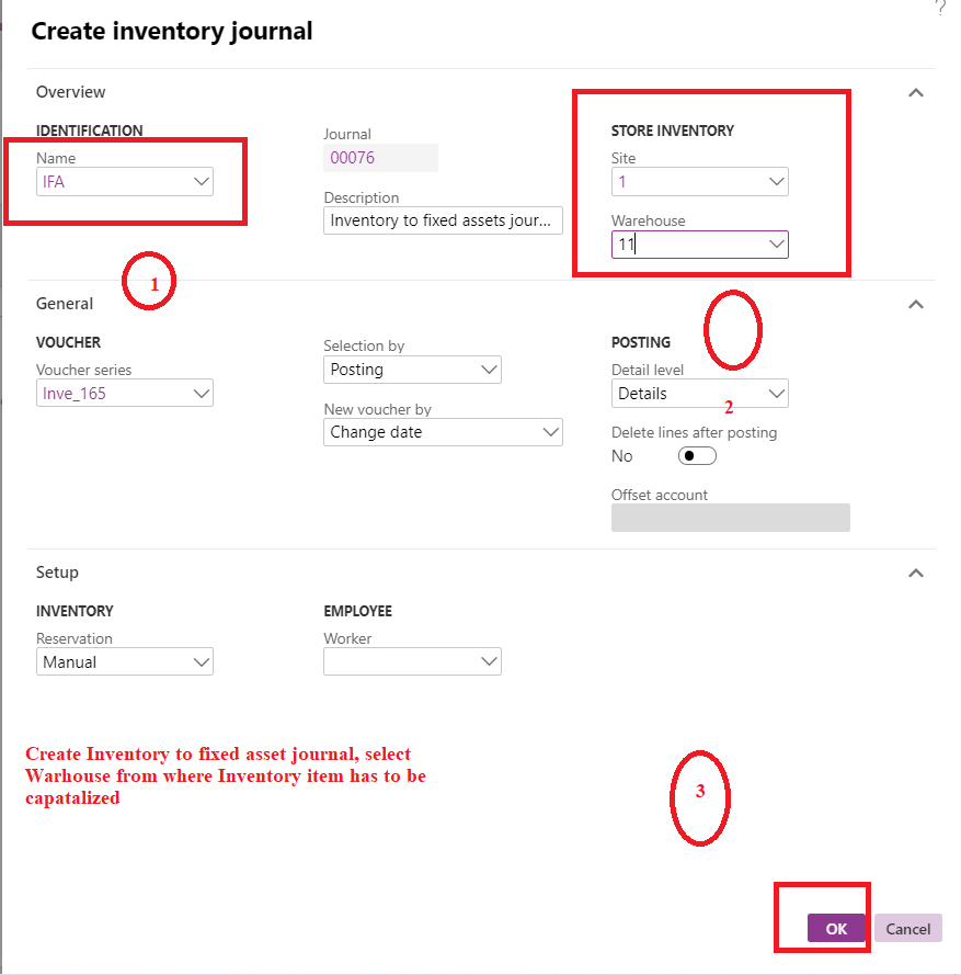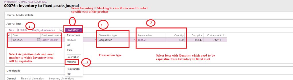 Fixed Asset > fixed asset Journal > Inventory to Fixed asset Journal