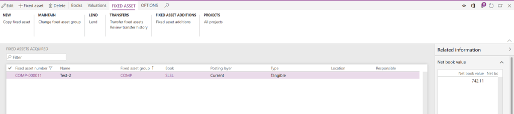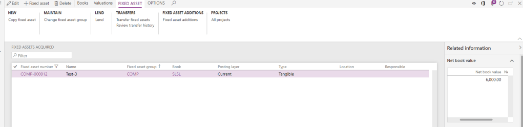 - Fixed asset Acquisition Proposal > Fixed asset Journal > Fixed Asset