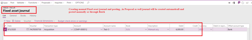 Apart from fixed asset proposal method user can post manual fixed asset acquisition journal to acquire Fixed asset