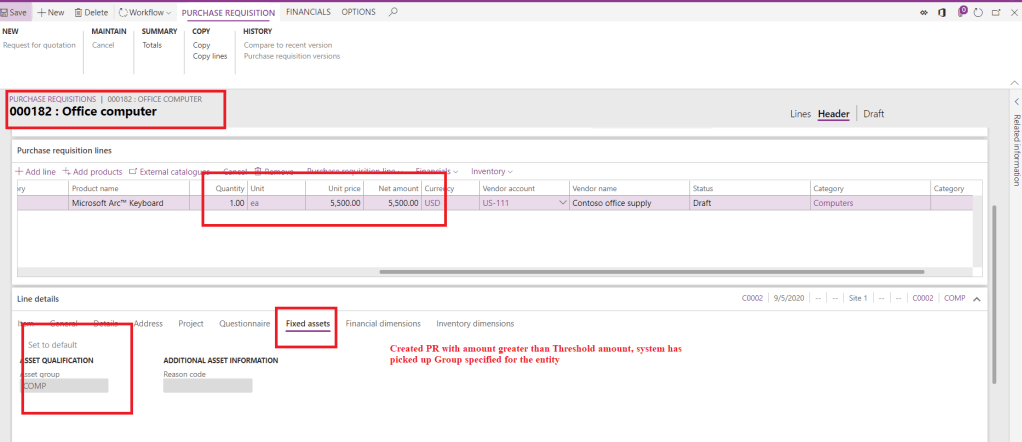 Scenarios-1: Purchase requisition > PO > PO Invoice > Fixed asset