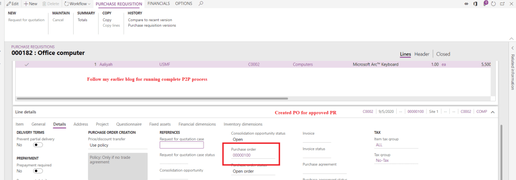 Step-1: Create PR > Add lines > Approve PR > release PR > Create PO