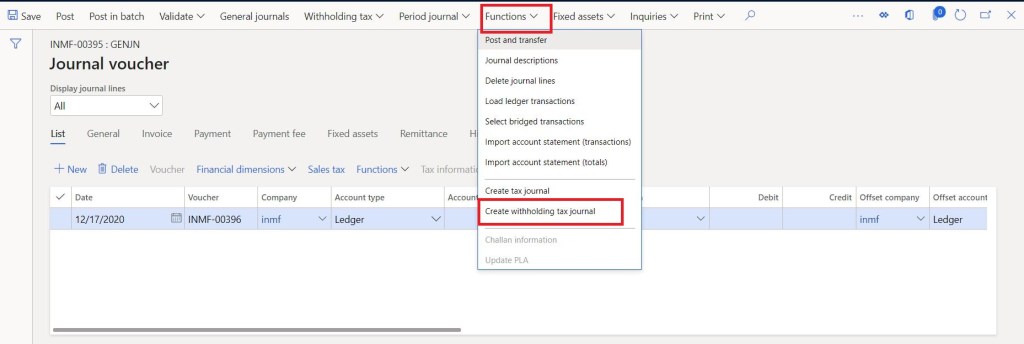 Step-2: Create Withholding tax Journal and select Withholding Tax type, Group and Direction