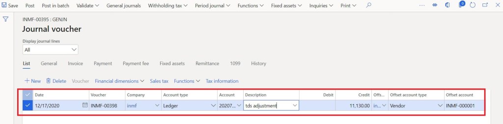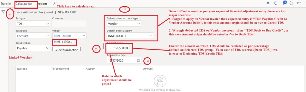 In this blog I will explain about how we can post withholding tax adjustments using withholding tax journal in D365.In previous blog of withholding tax I have explained overall end to end process , so if you have not read then click here to go through it: