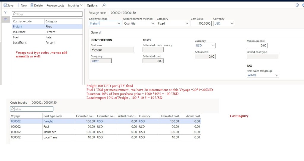 Now new Voyage has been created, select the Voyage and click on Voyage cost and Cost inquiry.