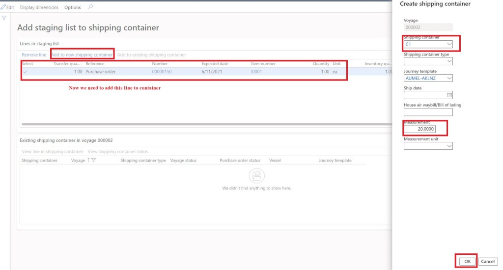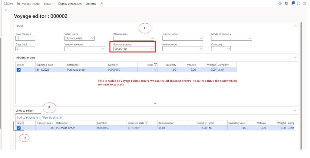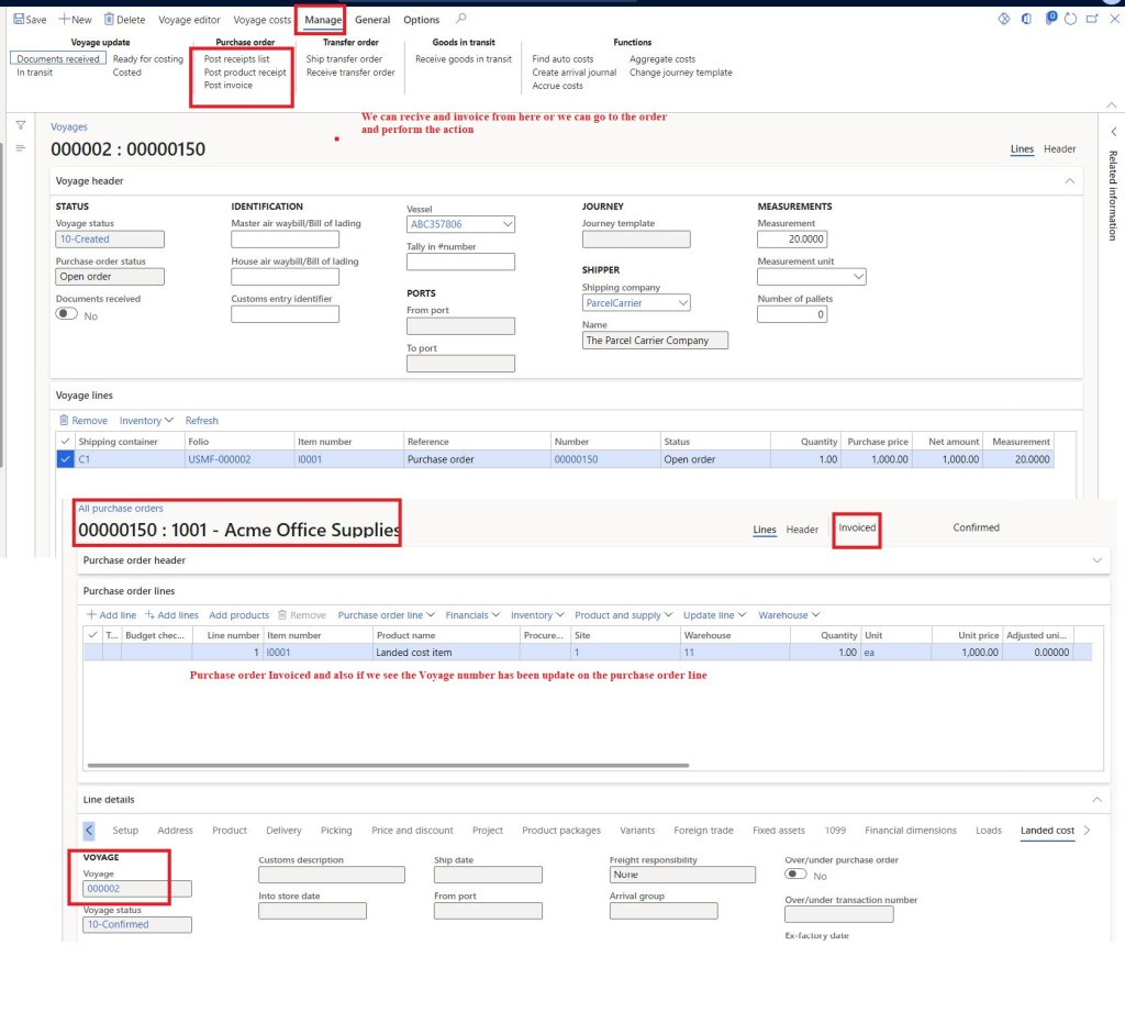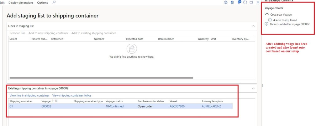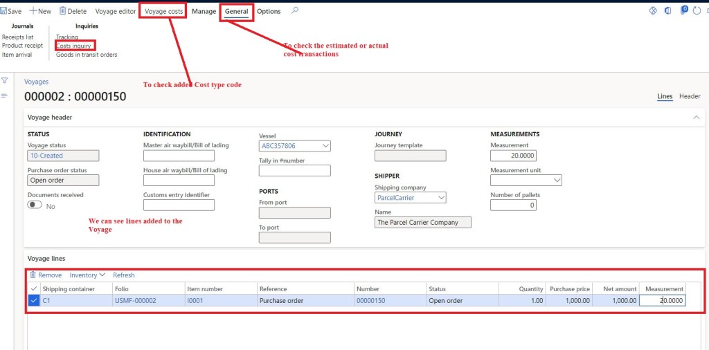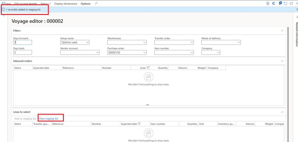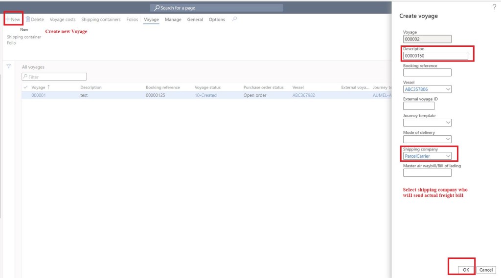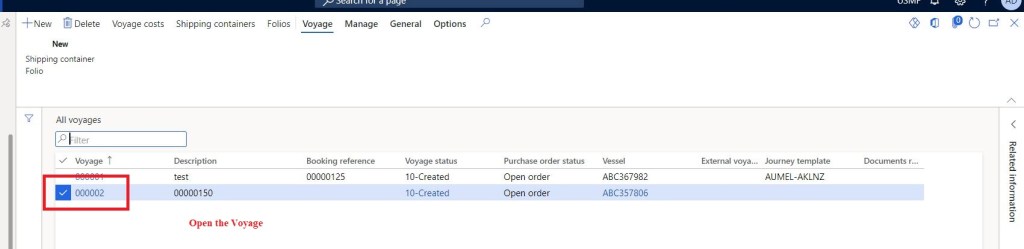 Step-2: Create Voyage against the “Inbound Purchase Order”
