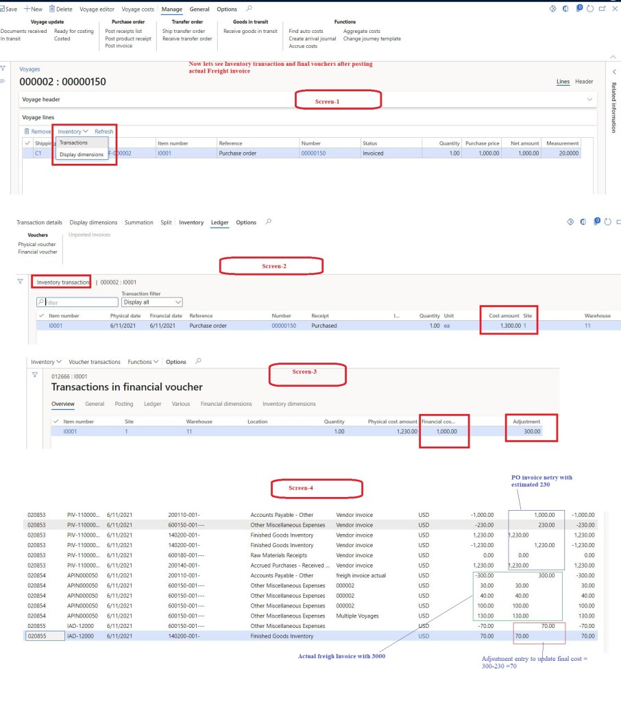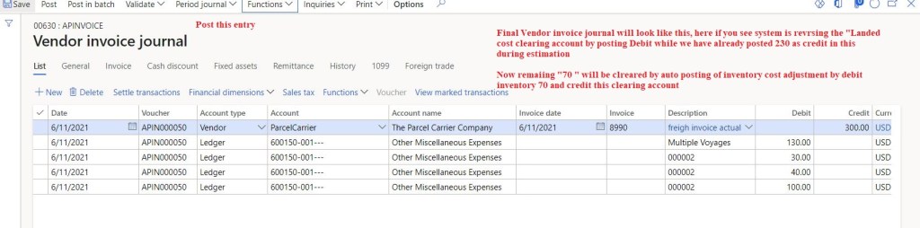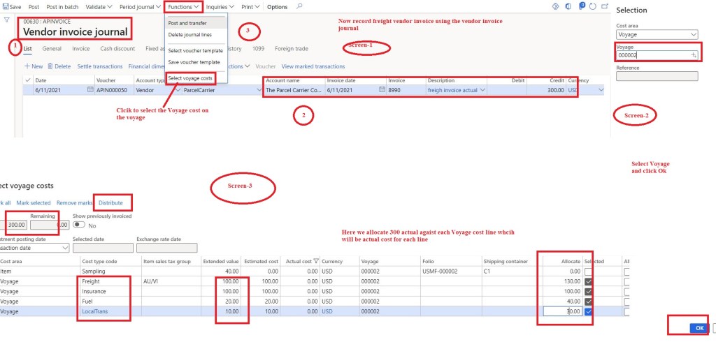 Step-8: Post Actual Freight invoice from Carrier company and allocate against Voyage cost lines.