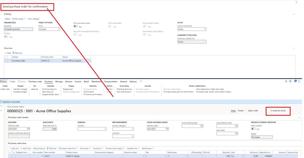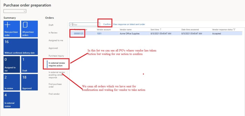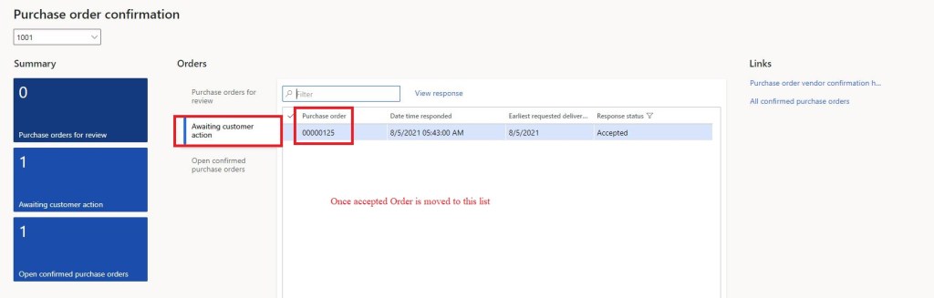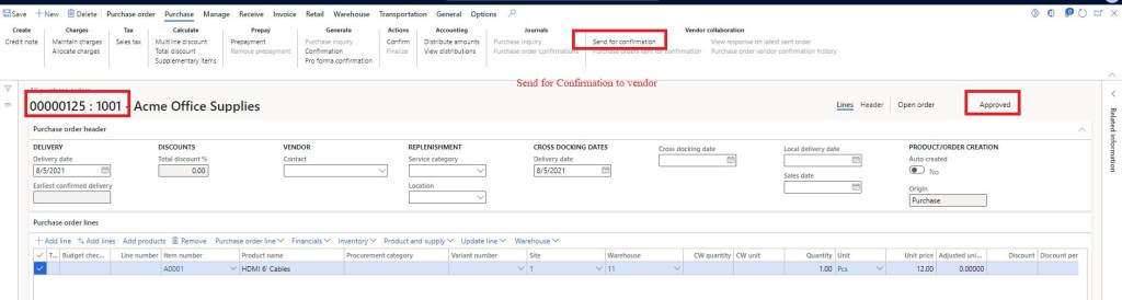 Note: This can be auto confirmed if vendor is enabled for Auto confirm.