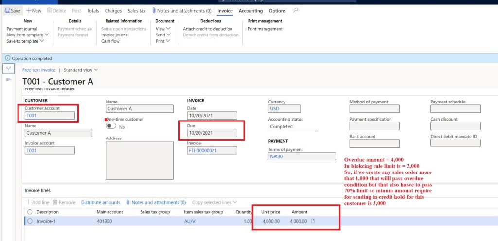 Post Invoice for customer A = 4,000 with due date 20-Oct-2021 which means this invoice is overdue on 22-oct -2021