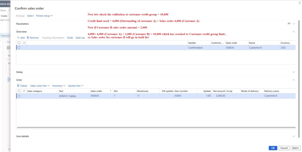 Now let’s create sales order for customer A = 2,000 (It should not go in hold)