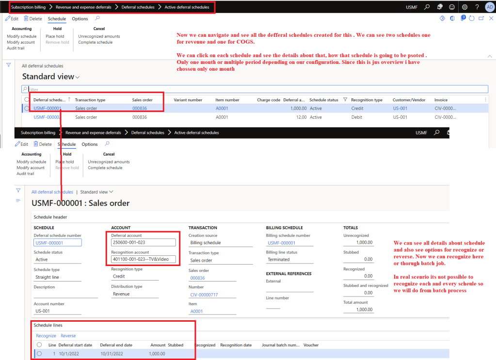 Example: Lets say we buy Netflix subscription of worth 1200 for an year in the month of Jan, now when Netflix generates the invoice for this subscription, should it post revenue of 1200 in Jan month?? No, it shouldn’t, because this revenue is for next 12 month. So at this point of time when we post invoice in Jan , revenue gets deferred to the deferral ledger instead actual revenue then later ever month we transfer from deferral account to respective month which which is called as recognition.